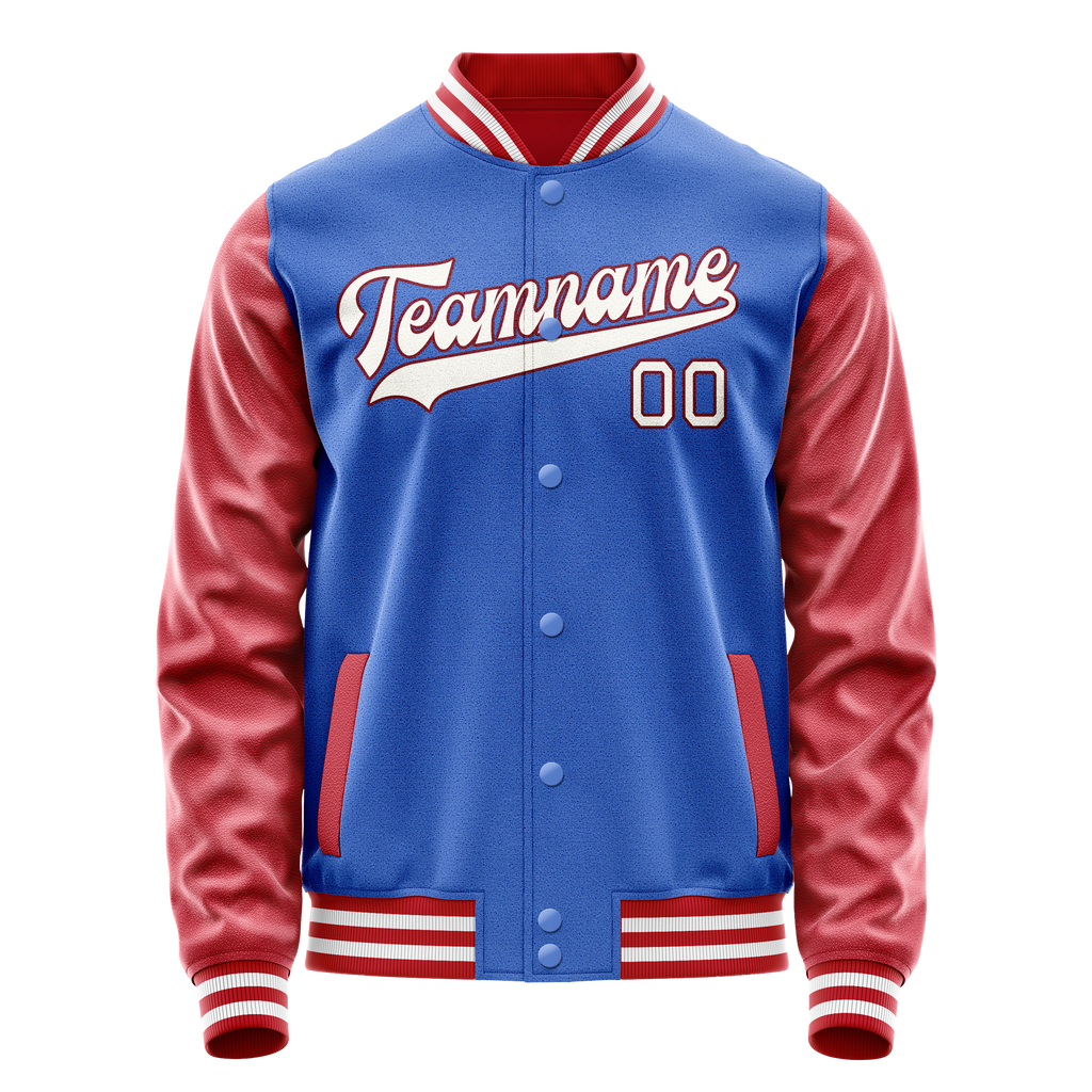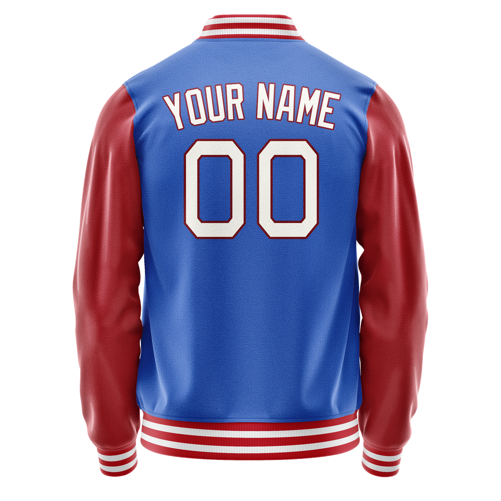 Custom Electric-Blue Crimson Solid Color Varsity Letterman Jacket