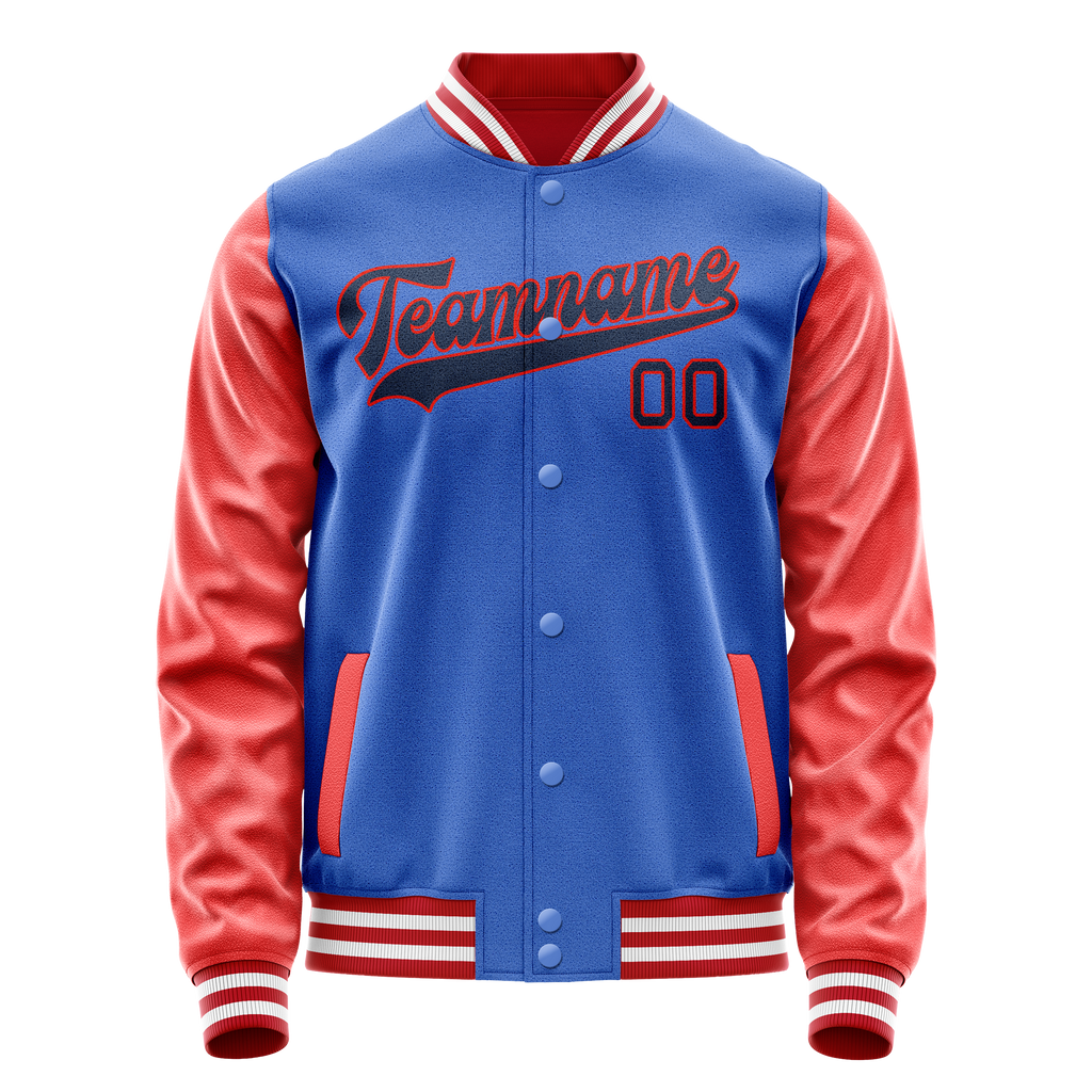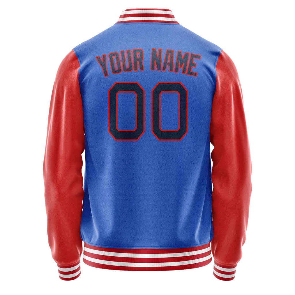 Custom Electric-Blue Orange Solid Color Varsity Letterman Jacket