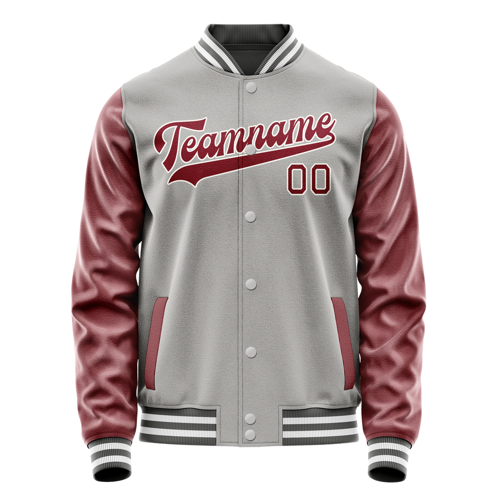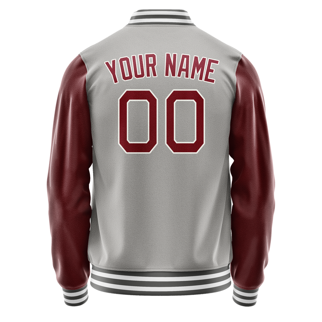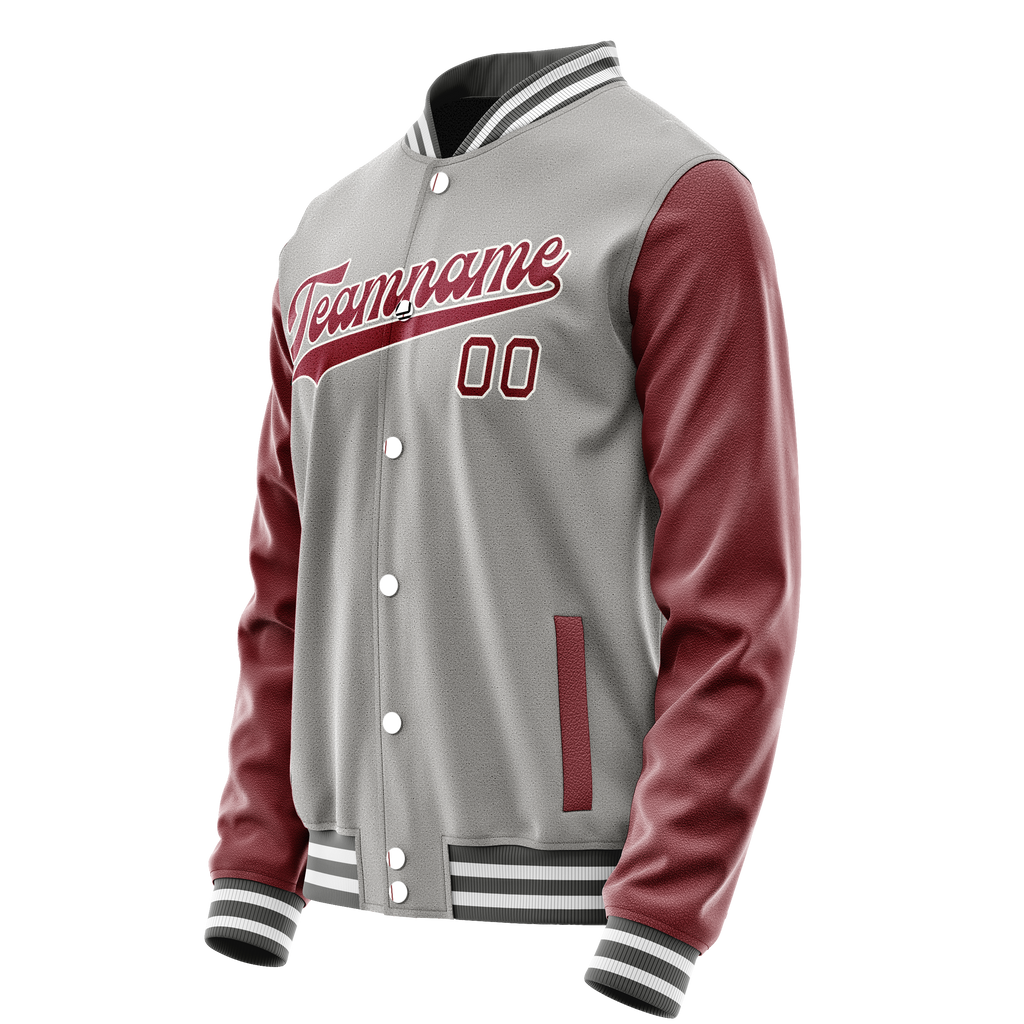Custom Gray Crimson Solid Color Varsity Letterman Jacket