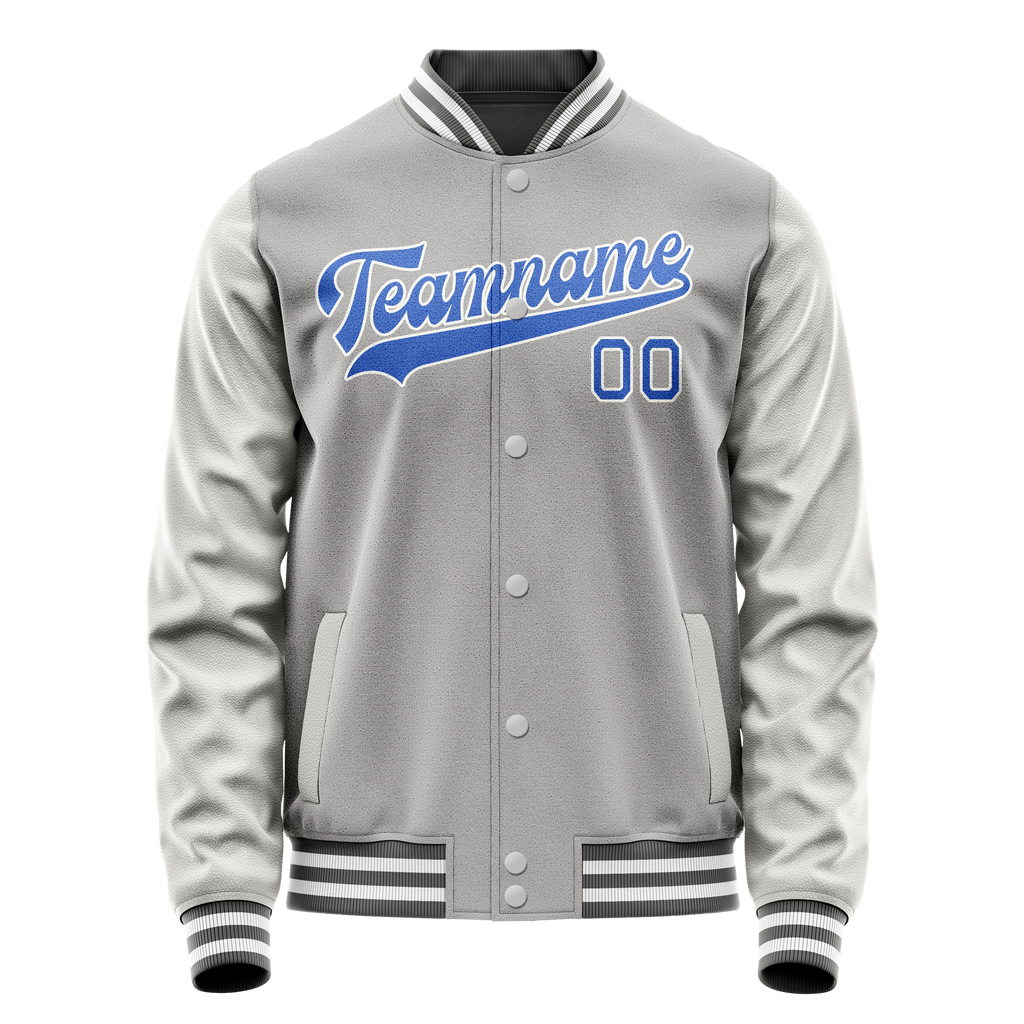 Custom Gray Light-Blue Solid Color Varsity Letterman Jacket