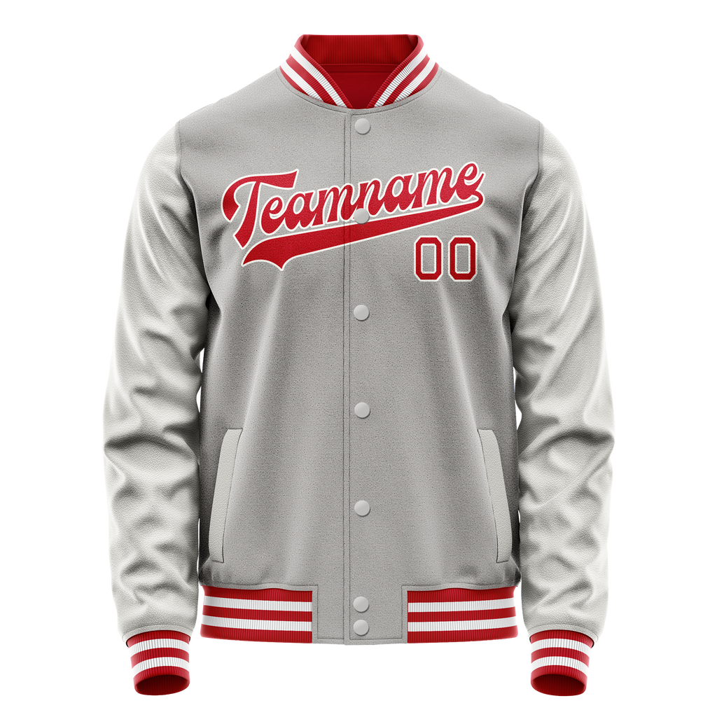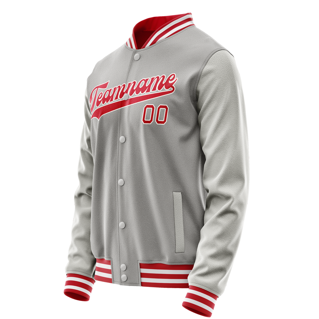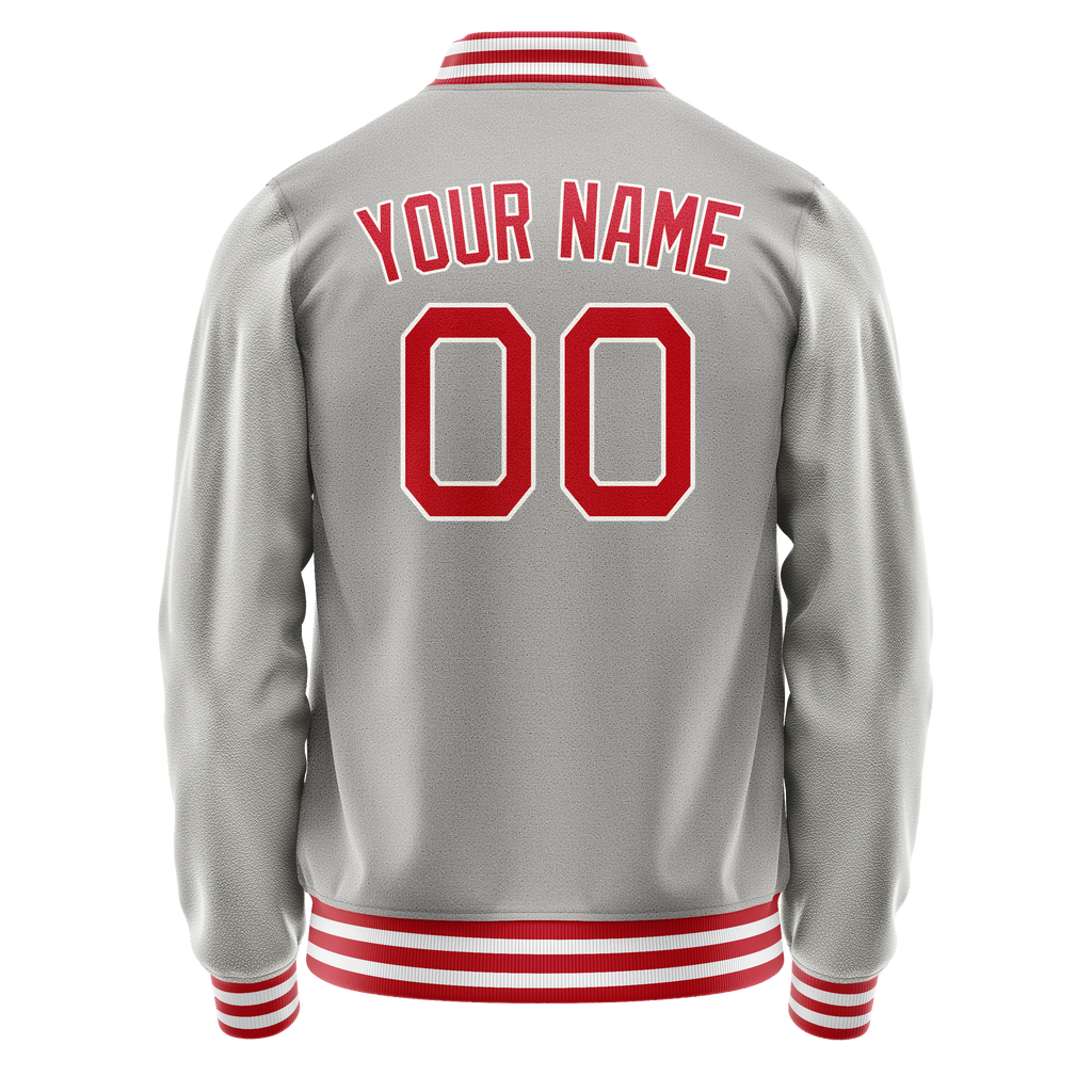 Custom Gray Red Solid Color Varsity Letterman Jacket