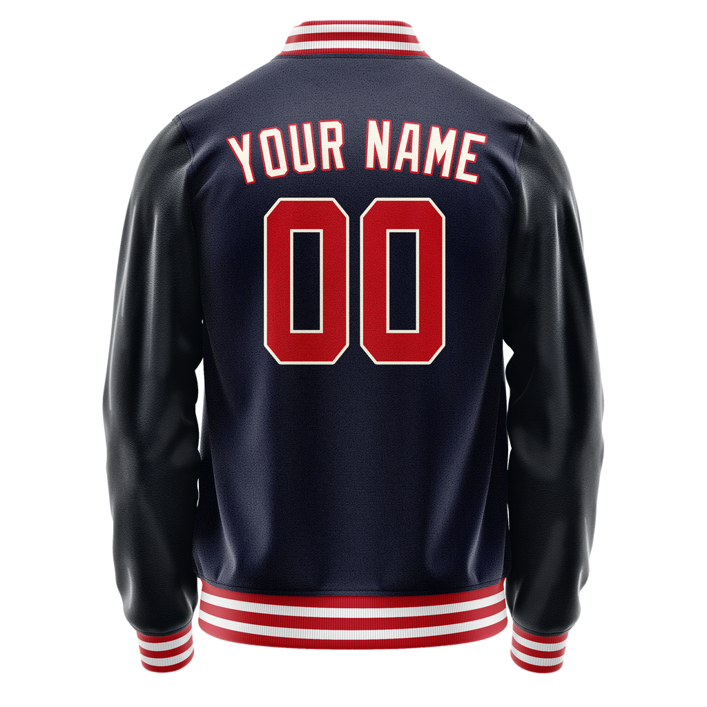 Custom Navy Red Solid Color Varsity Letterman Jacket
