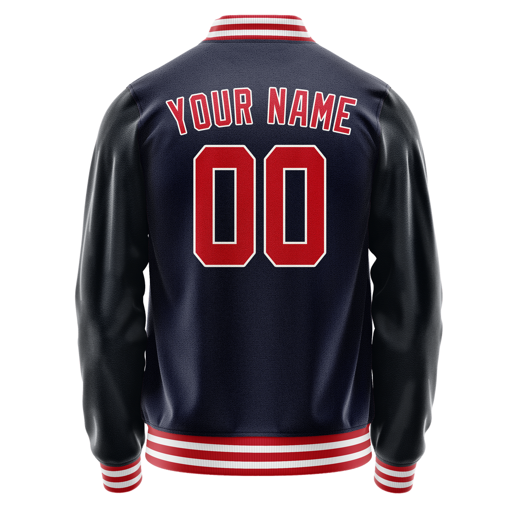 Custom Navy Red Solid Color Varsity Letterman Jacket