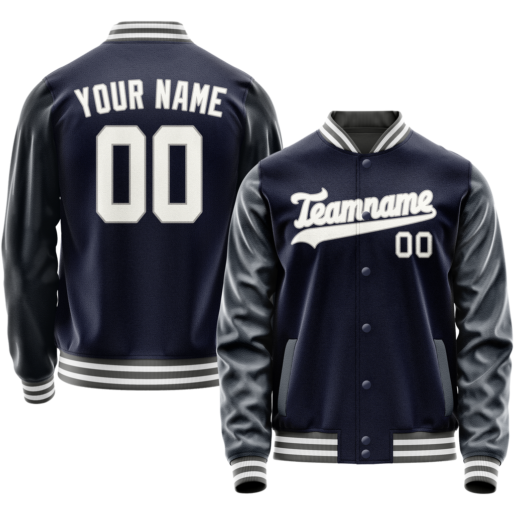 Custom Navy White Solid Color Varsity Letterman Jacket
