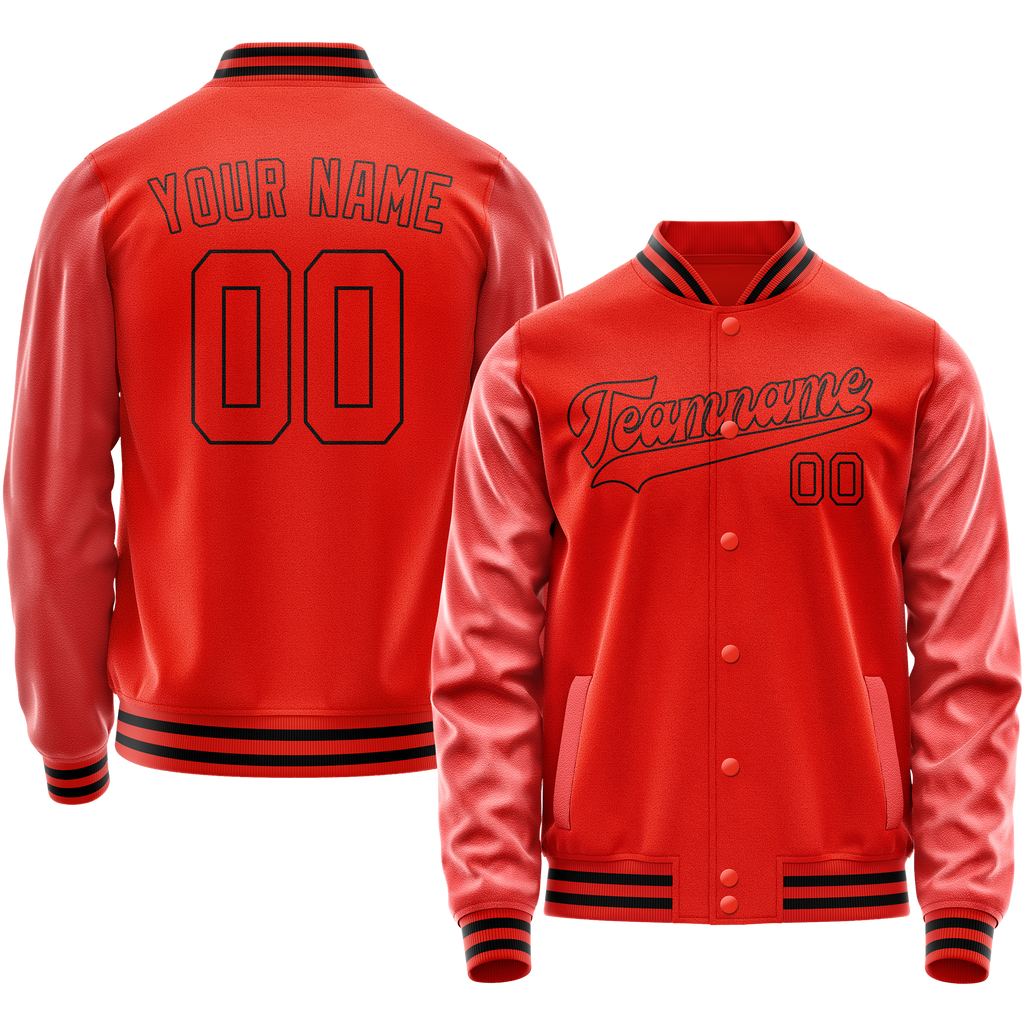 Custom Orange Black Solid Color Varsity Letterman Jacket