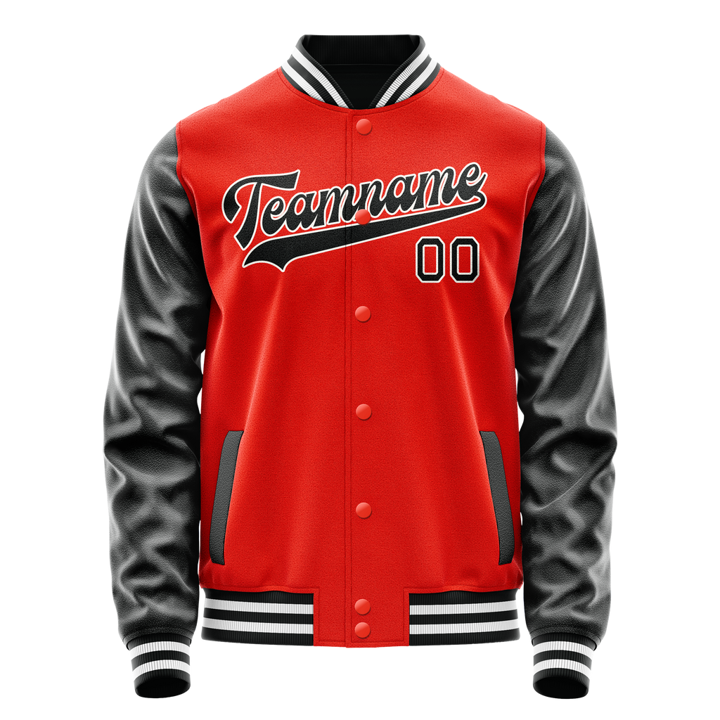 Custom Orange Black Solid Color Varsity Letterman Jacket