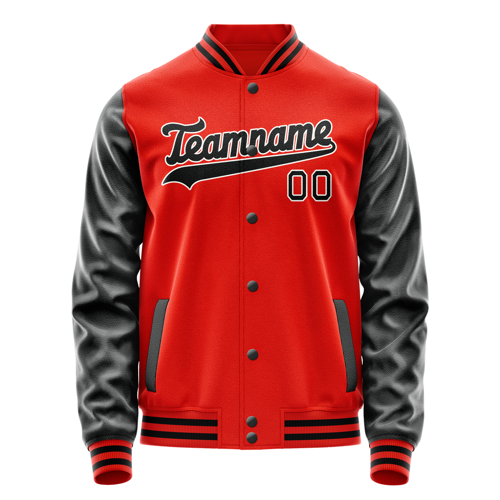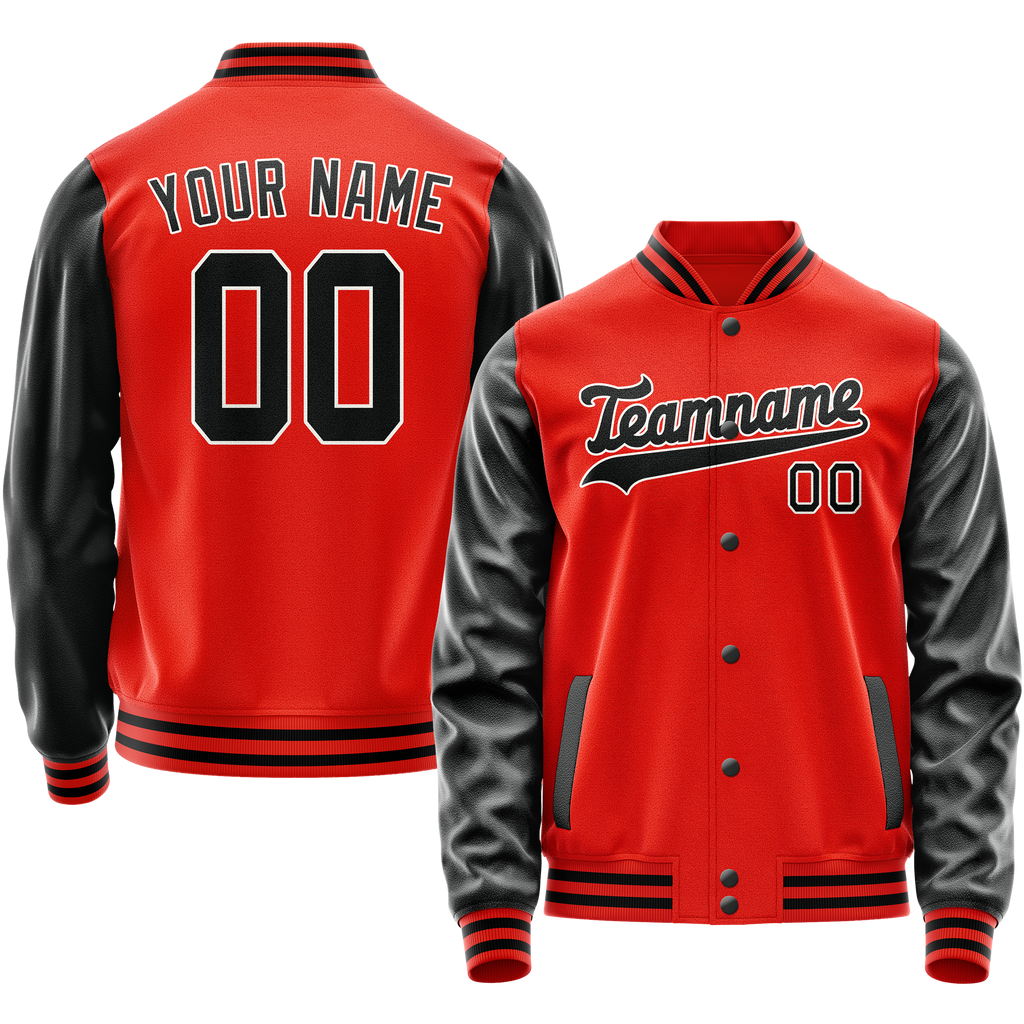 Custom Orange Black Solid Color Varsity Letterman Jacket