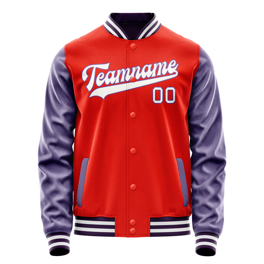Custom Orange Purple Solid Color Varsity Letterman Jacket