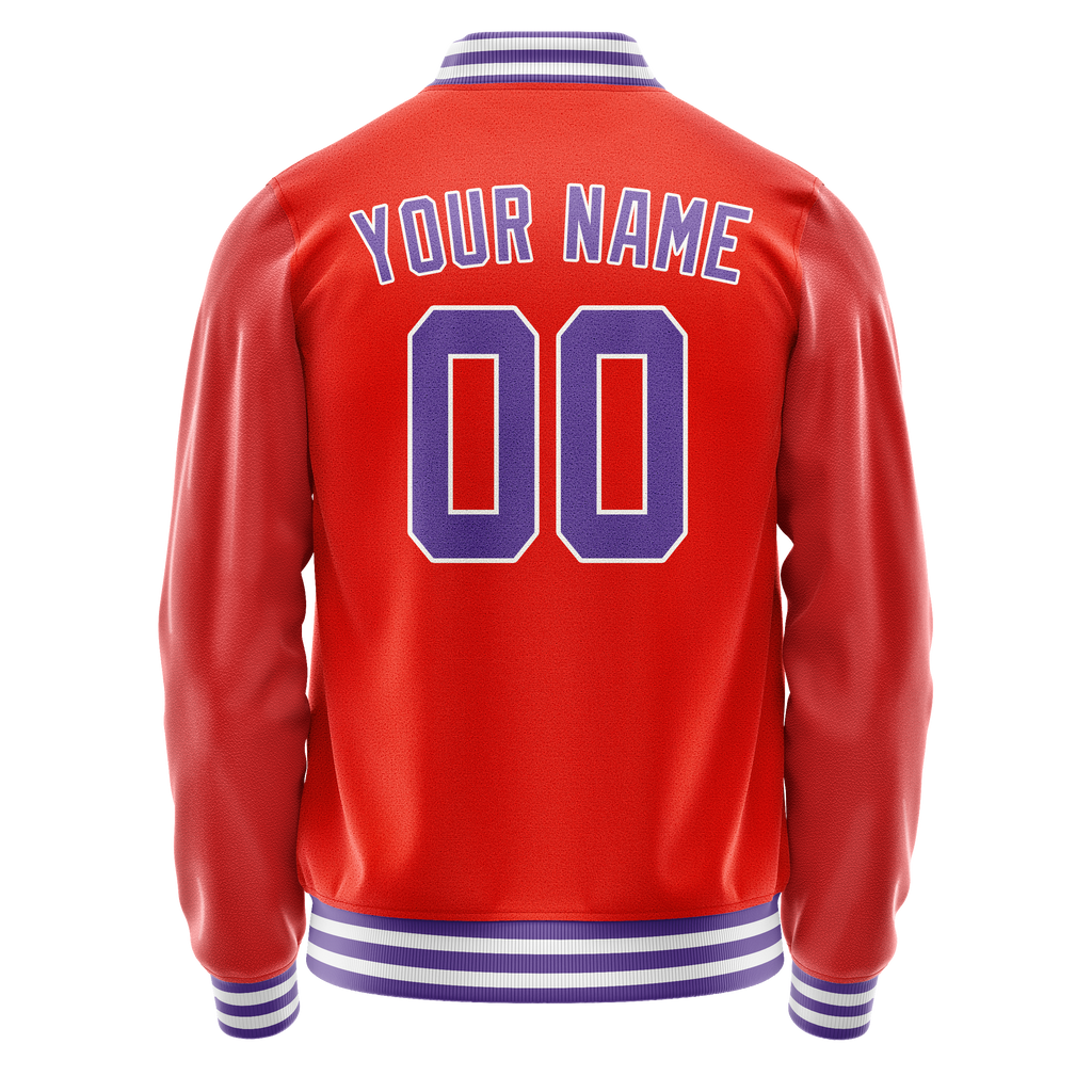 Custom Orange Purple Solid Color Varsity Letterman Jacket