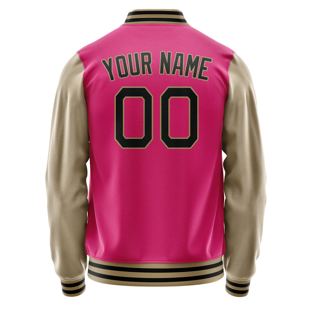 Custom Pink Cream Solid Color Varsity Letterman Jacket