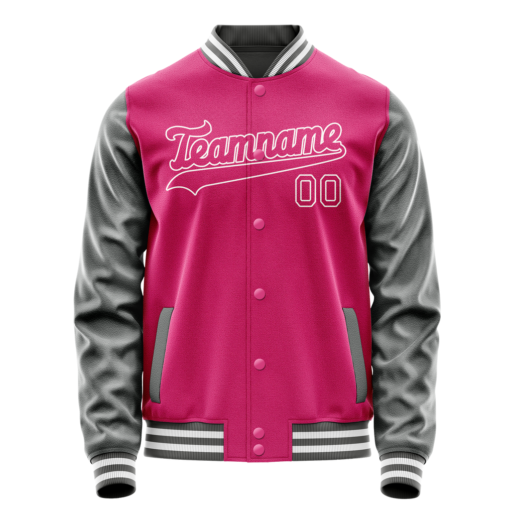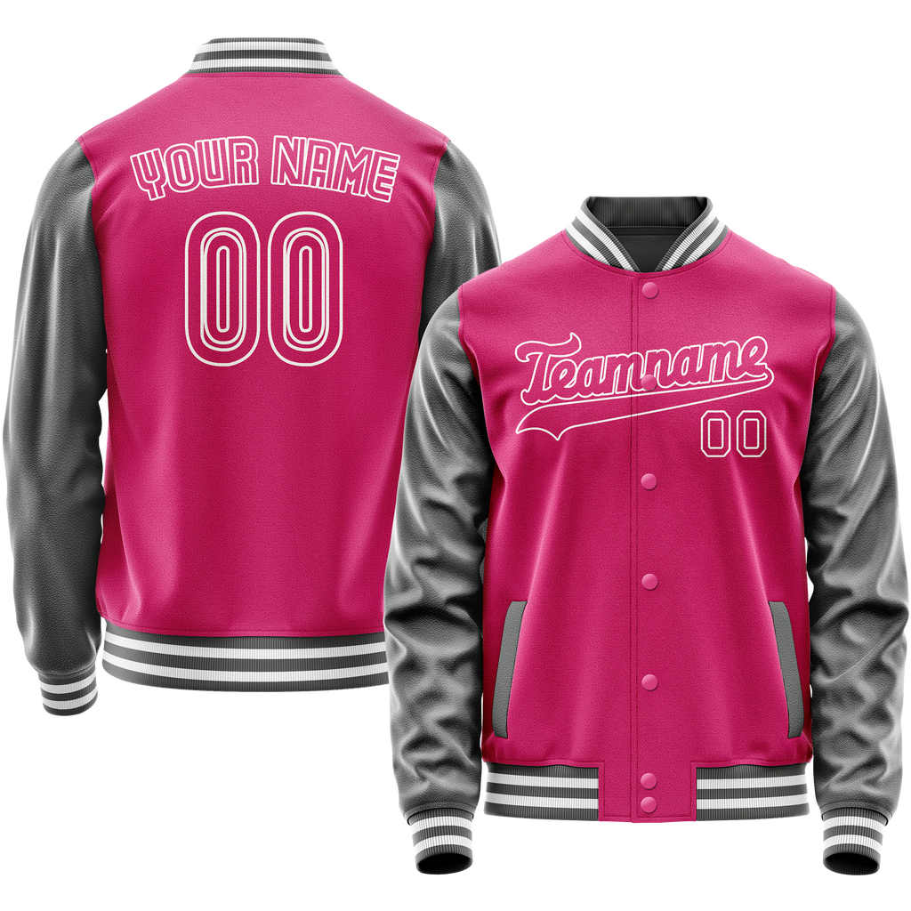 Custom Pink Gray Solid Color Varsity Letterman Jacket