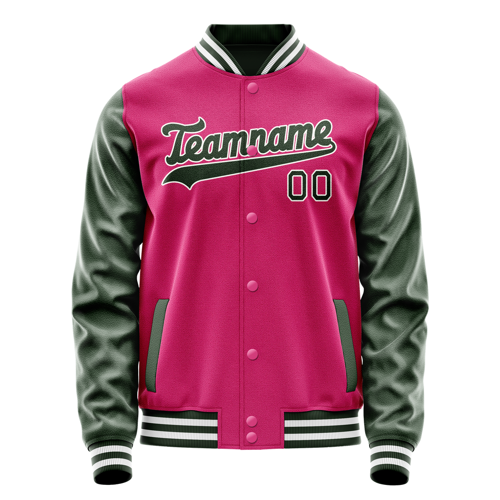 Custom Pink Kelly-Green Solid Color Varsity Letterman Jacket