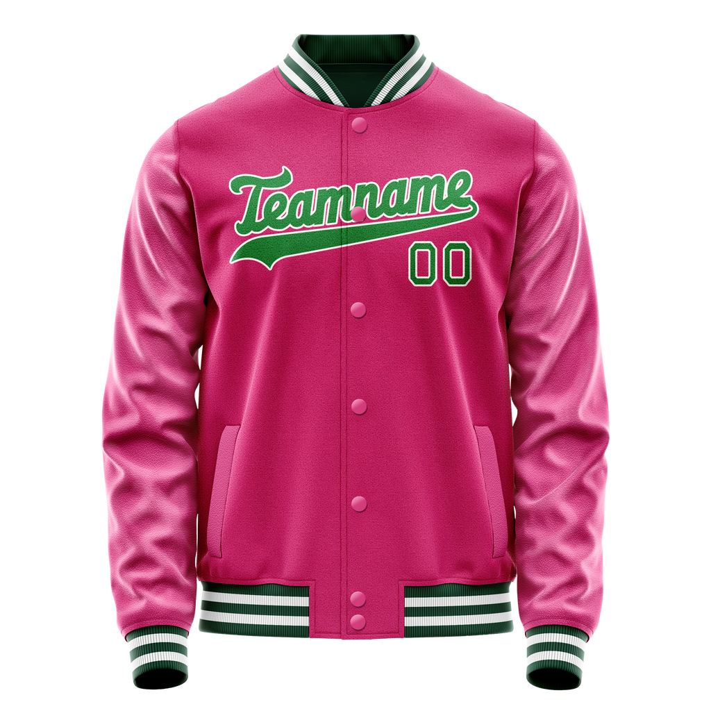 Custom Pink Neon-Green Solid Color Varsity Letterman Jacket