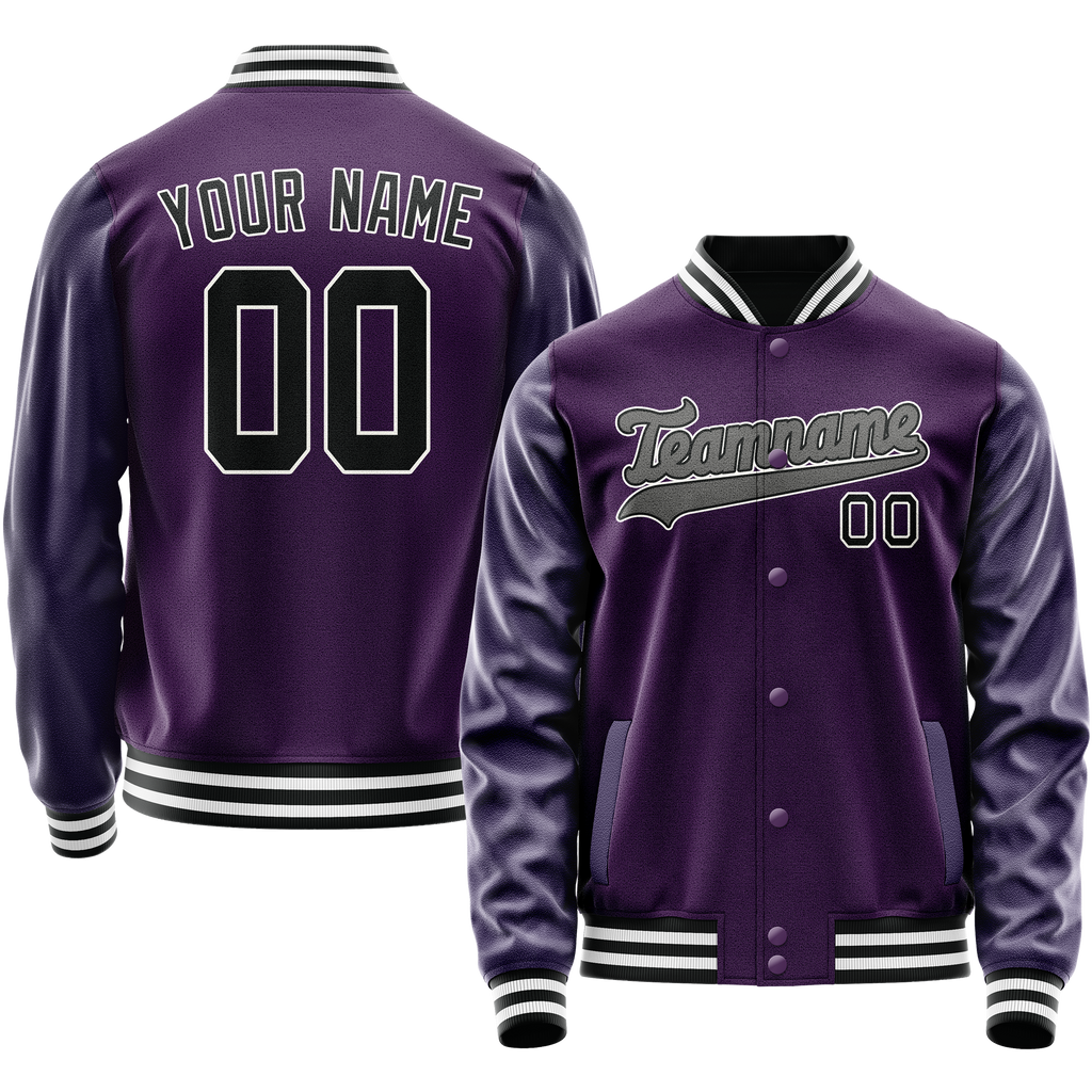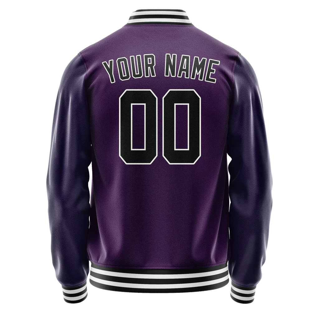 Custom Purple Black Solid Color Varsity Letterman Jacket