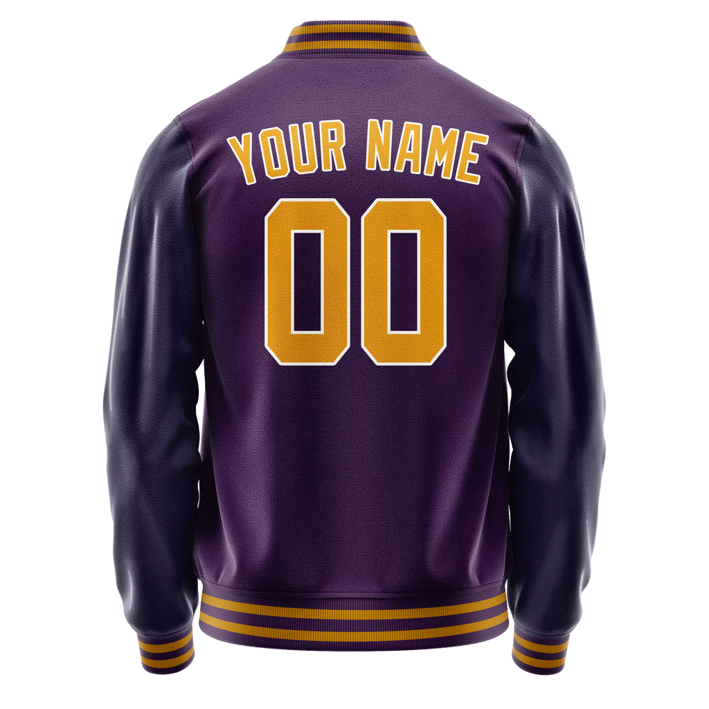 Custom Purple Gold Solid Color Varsity Letterman Jacket