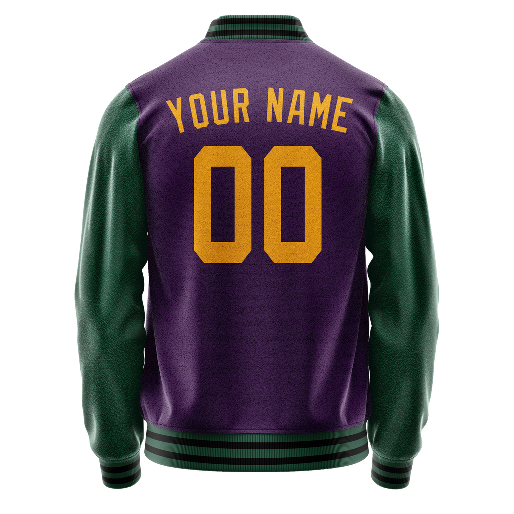 Custom Purple Kelly-Green Solid Color Varsity Letterman Jacket