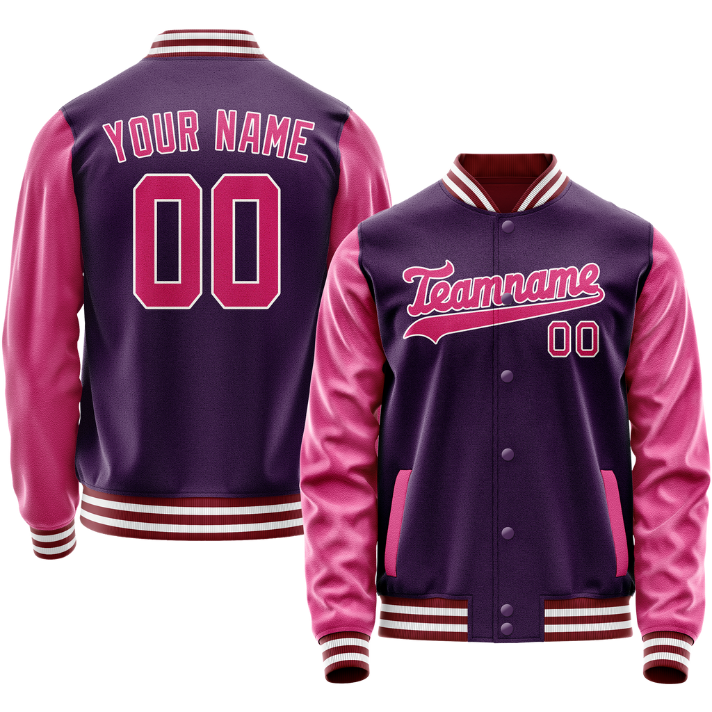 Custom Purple Pink Solid Color Varsity Letterman Jacket