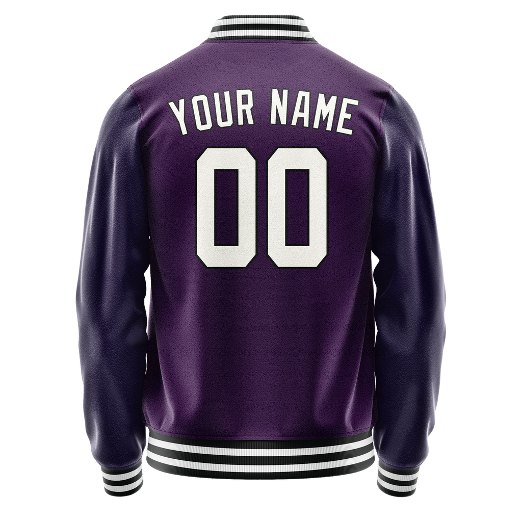 Custom Purple White Solid Color Varsity Letterman Jacket