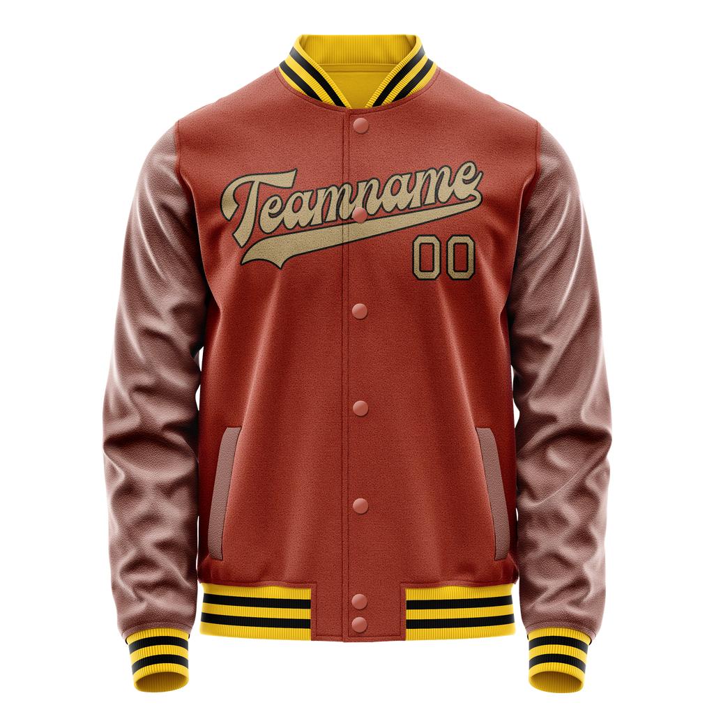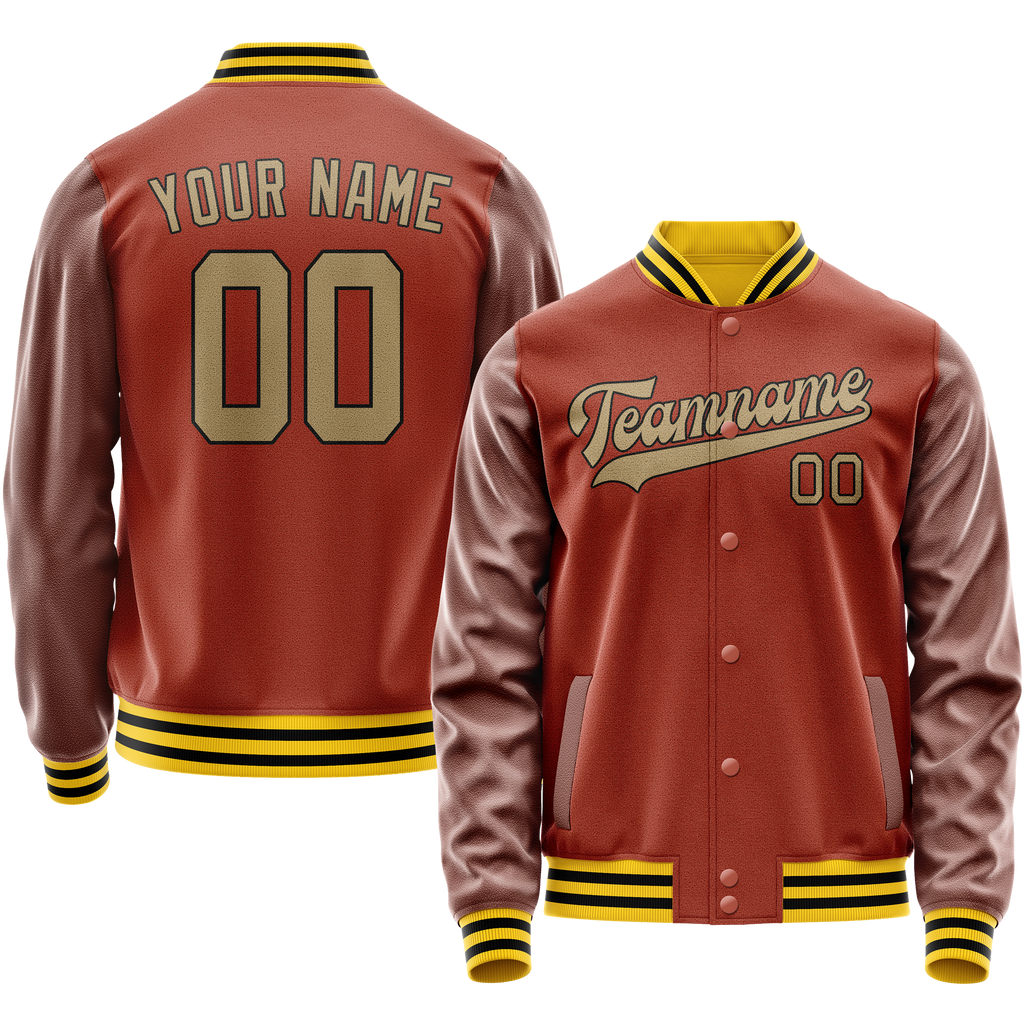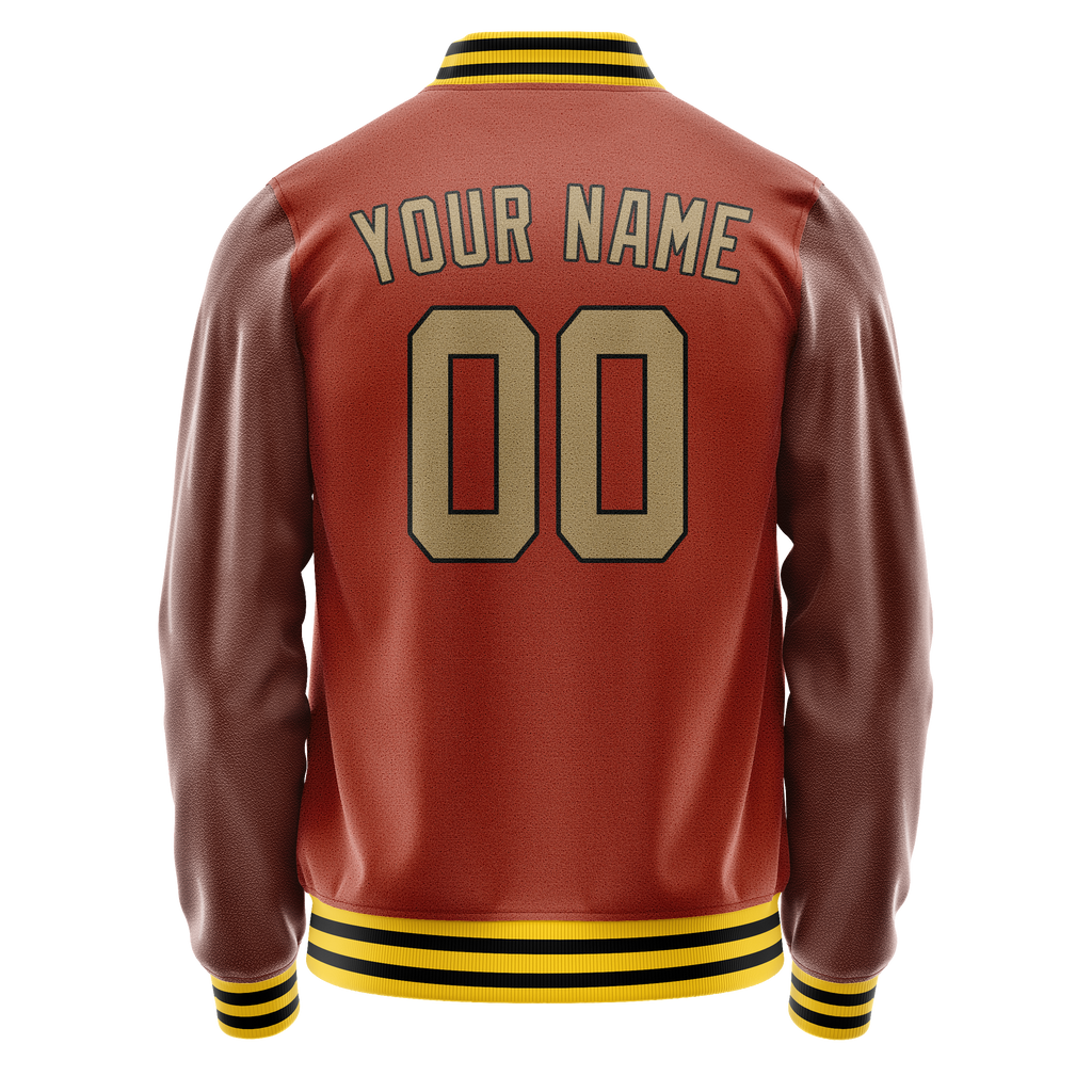 Custom Texas-Orange Old-Gold Solid Color Varsity Letterman Jacket