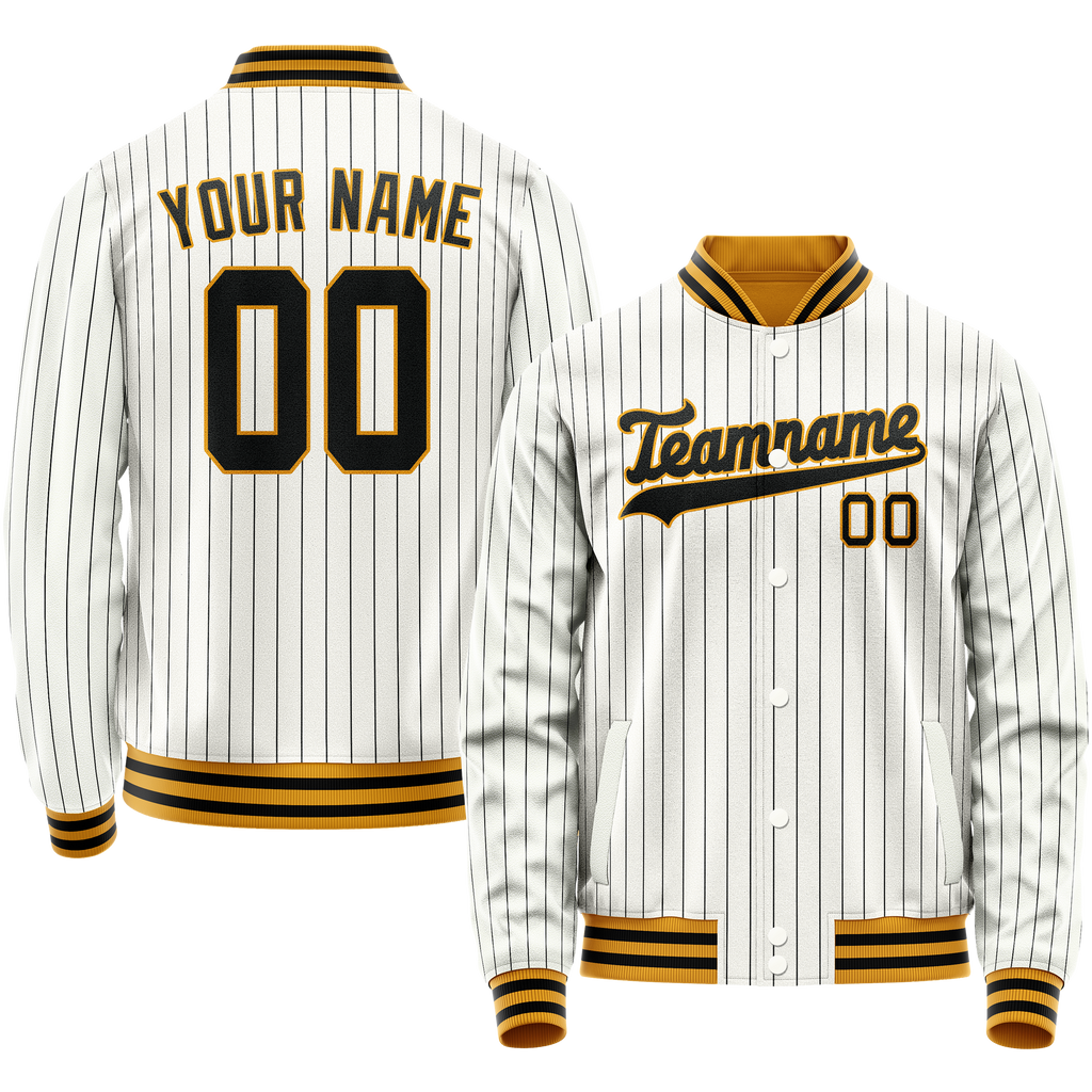 Custom White Black Black Pinstripe Varsity Letterman Jacket
