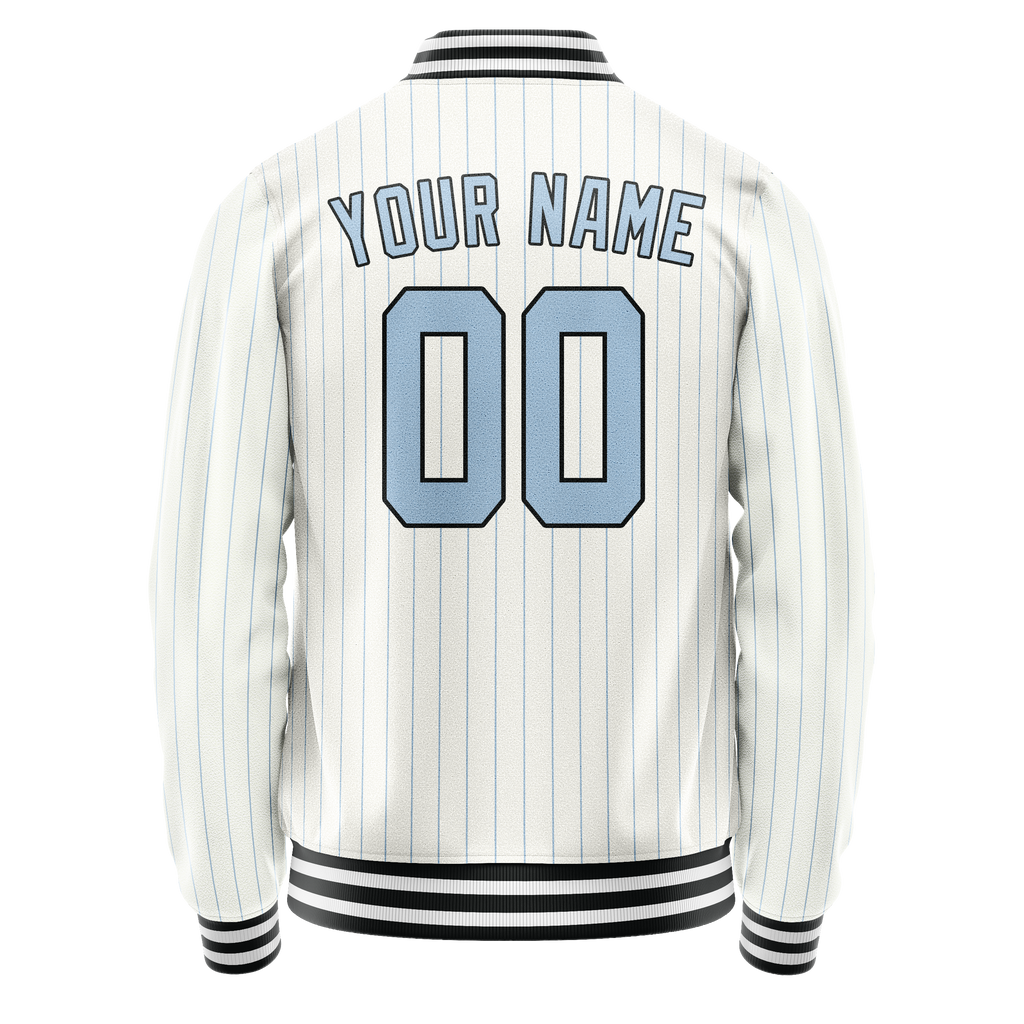 Custom White Light-Blue Light Blue Pinstripe Varsity Letterman Jacket