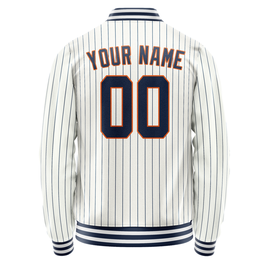 Custom White Navy Royal Pinstripe Varsity Letterman Jacket