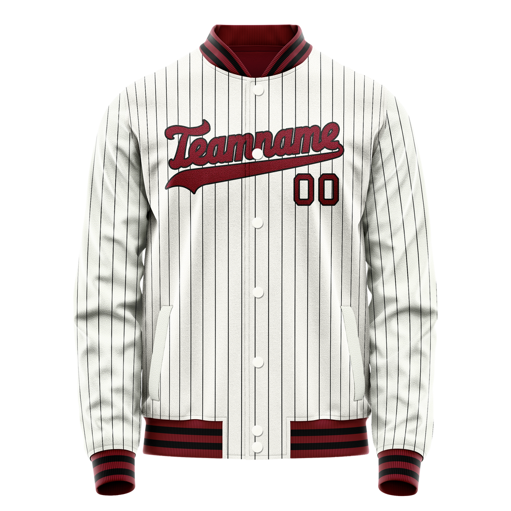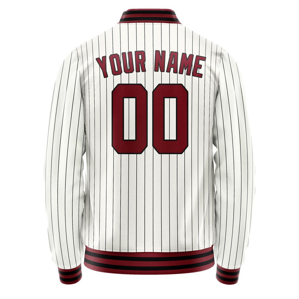 Custom White Red Black Pinstripe Varsity Letterman Jacket