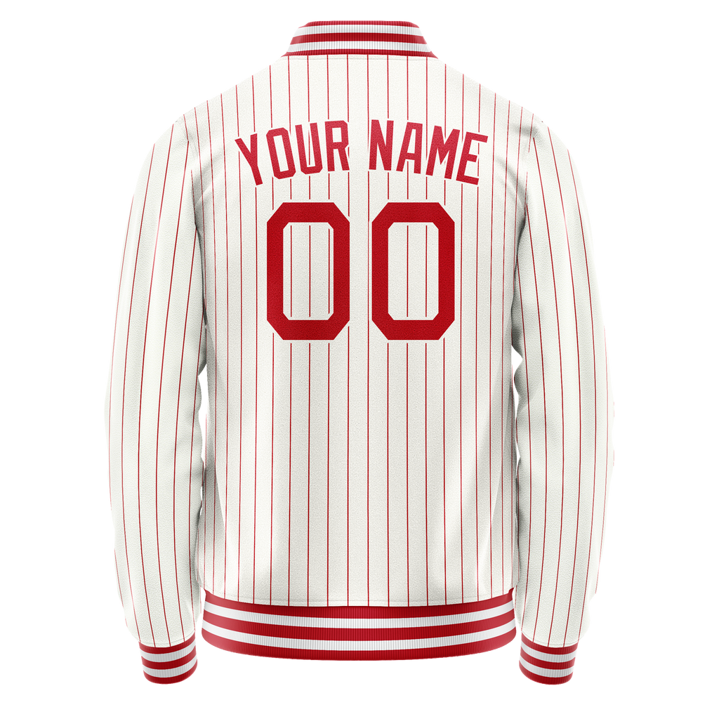 Custom White Red Red Pinstripe Varsity Letterman Jacket