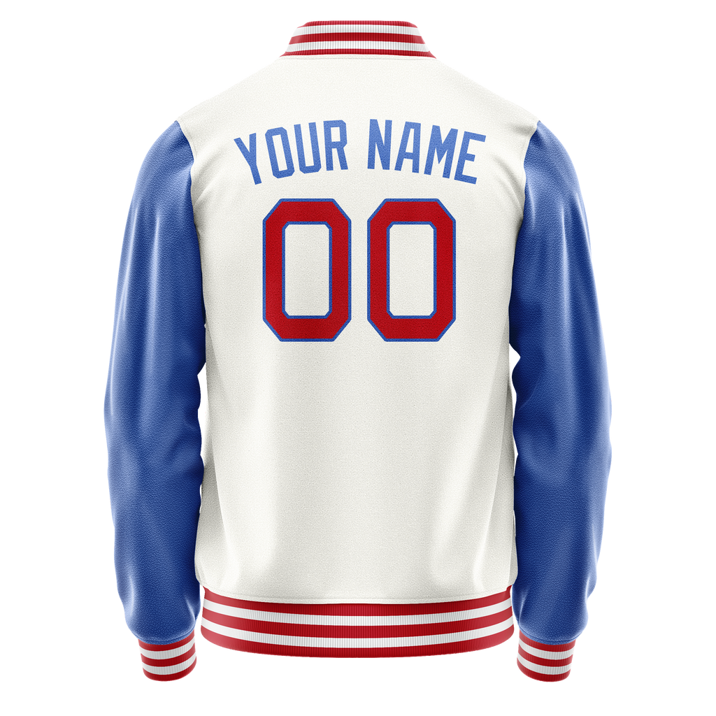 Custom White Royal Solid Color Varsity Letterman Jacket