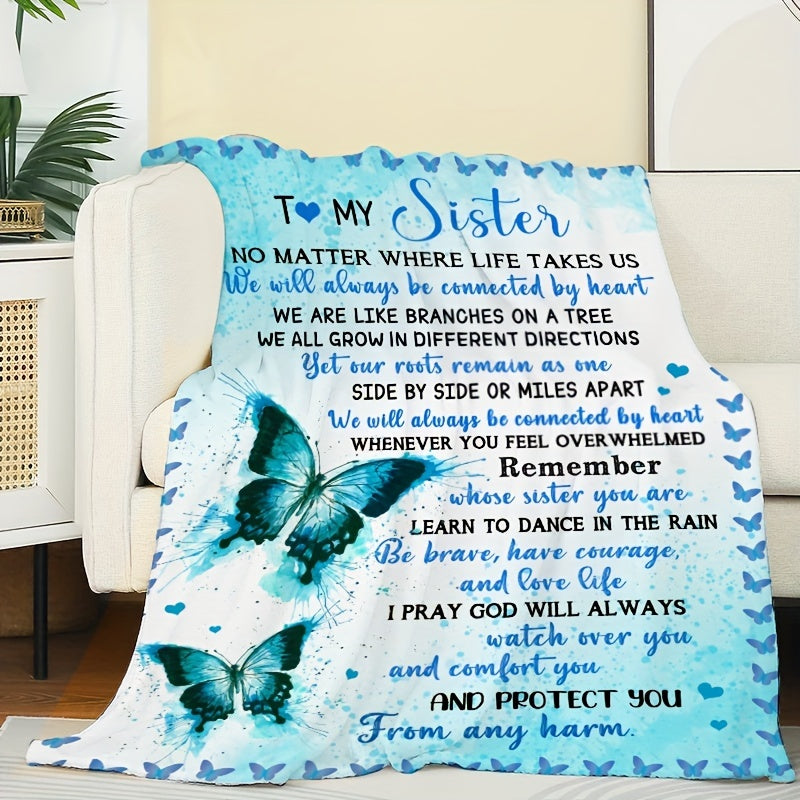 Gifts for Sister Blanket - To My Sister No Matter Where Life Takes Us We Will Always Be Connected by Heart - From Sibling, Birthday, Christmas, Everyday Encouragement, Inspirational