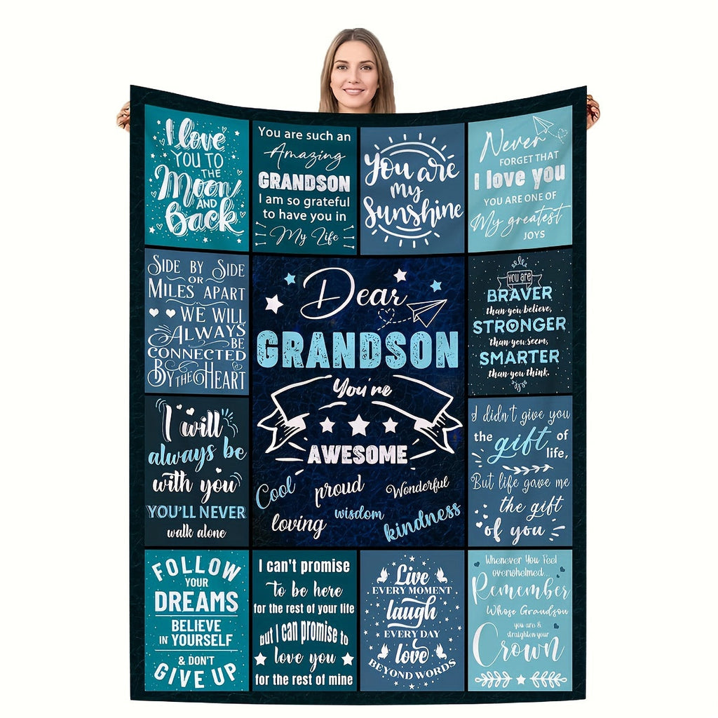 Blanket for Grandson Gifts - Dear Grandson You’re Awesome - From Grandma Grandpa, Birthday Christmas Graduation, Motivational Encouragement