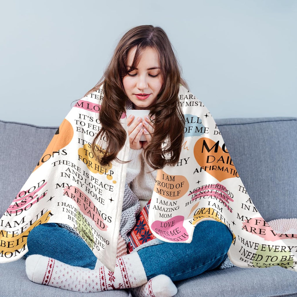 Blanket for Mom Gifts, “Mom Daily Affirmations”, From Daughter or Son, Birthday Christmas Everyday Encouragement, Inspirational