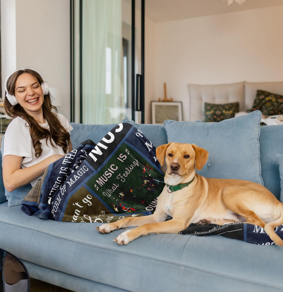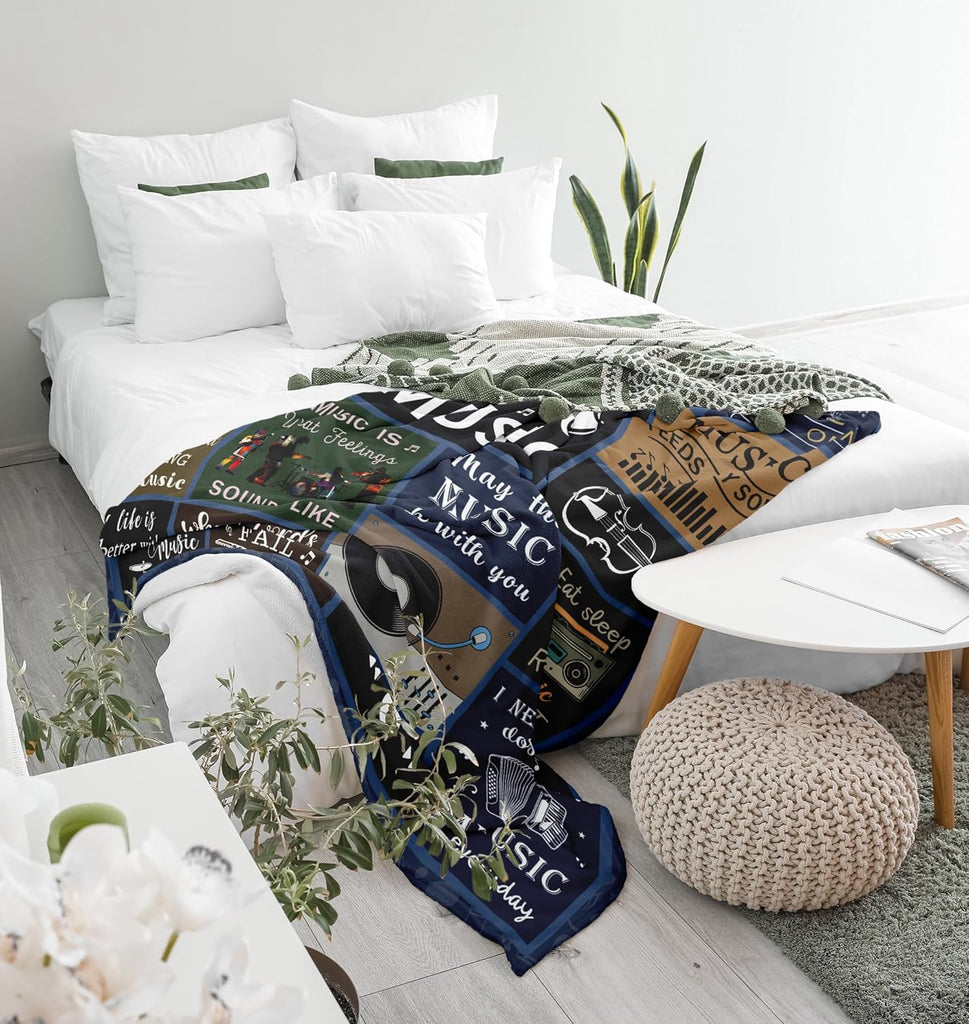 Blanket for Son Gifts, “May the Music Be With You”, From Mom Dad, Birthday, Christmas, Graduation, Inspirational, Motivational