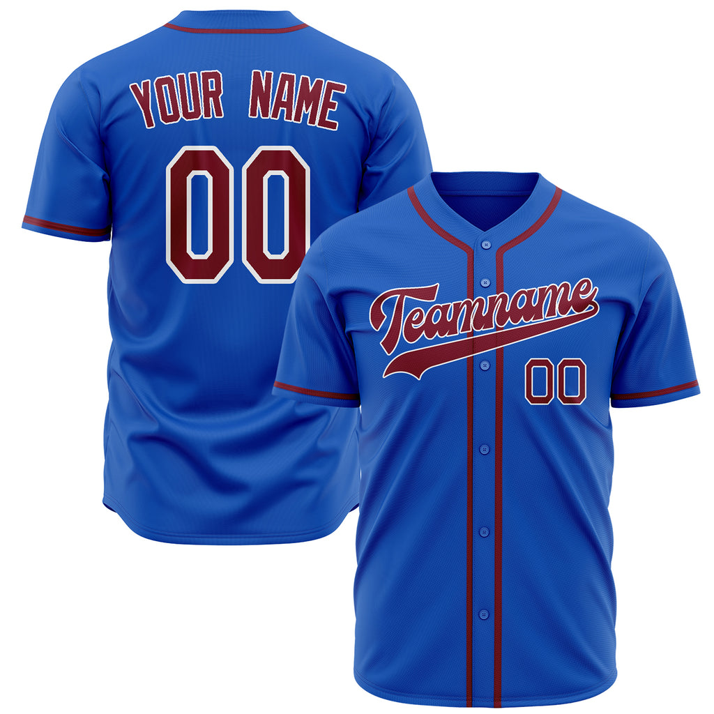 Custom Thunder Blue Baseball Jersey (With Crimson Color)