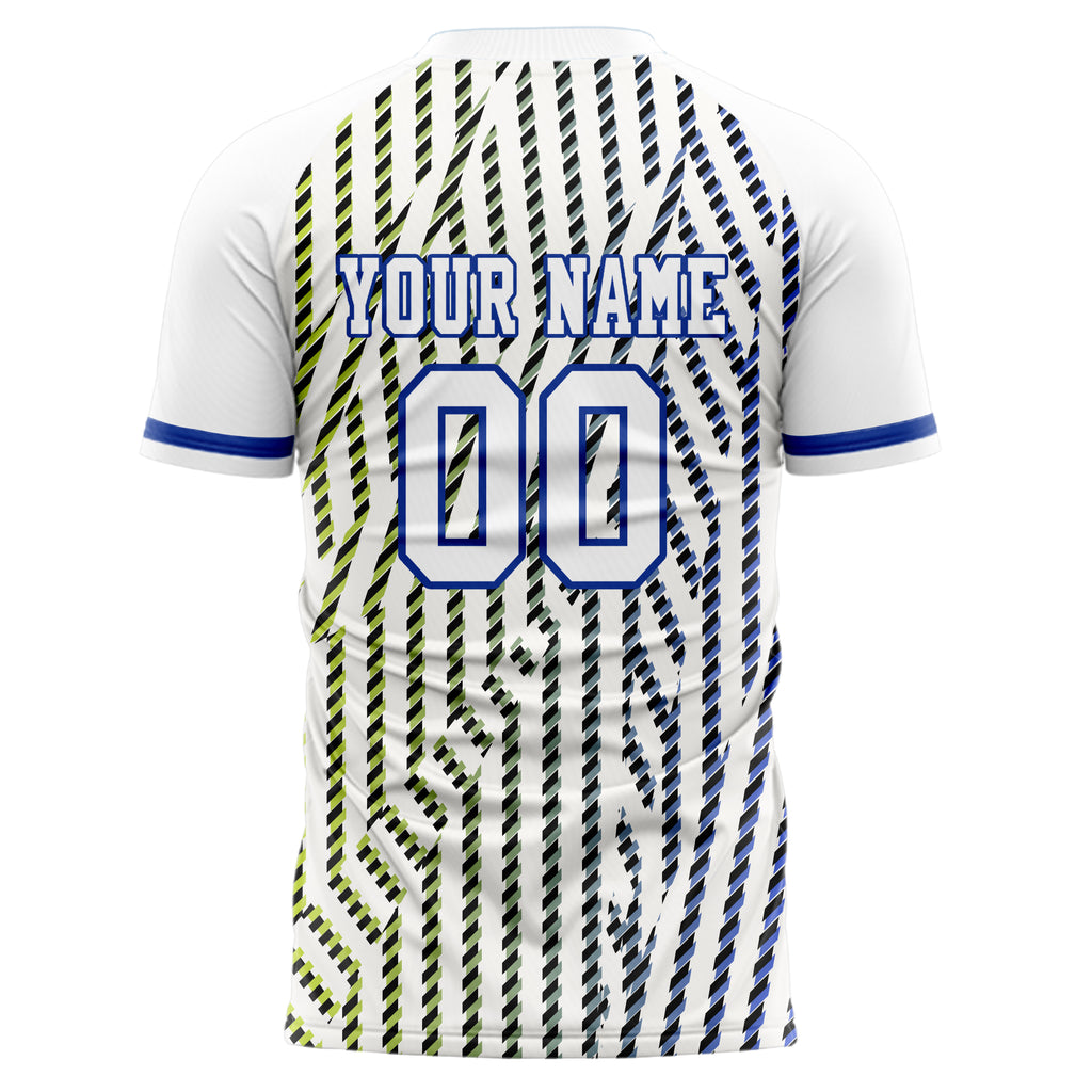 Custom White Blue Pattern Soccer Jersey