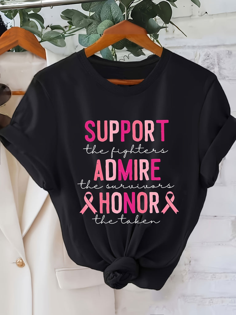 Cotton T Shirts For Women Support Admire And Honor Motivational Breast Cancer Awareness Ribbon T Shirt, Womens White Tee, Country Shirts Womens