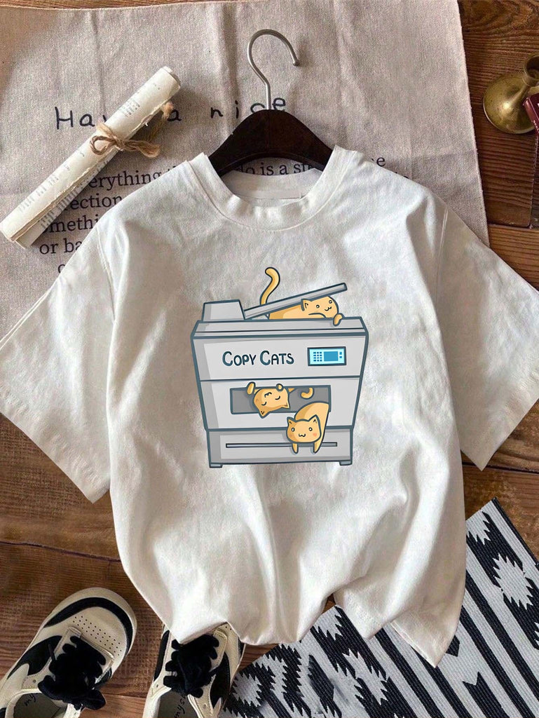 Cute T Shirts For Women Copy Cats Playful Kittens Around A Printer, Black T Shirt Women, Funny T Shirts For Women