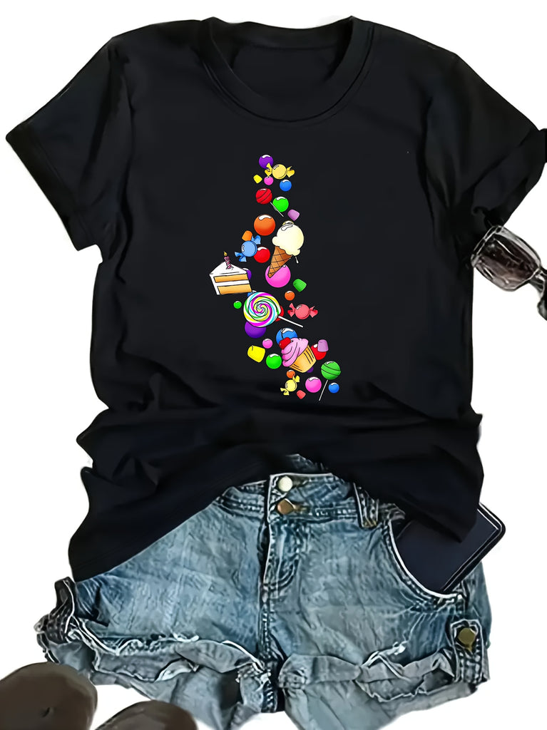 Graphic Shirts For Women Colorful Candy And Sweet Treats With Lollipop And Cupcake T Shirt, Women Tshirts, Womens Tees