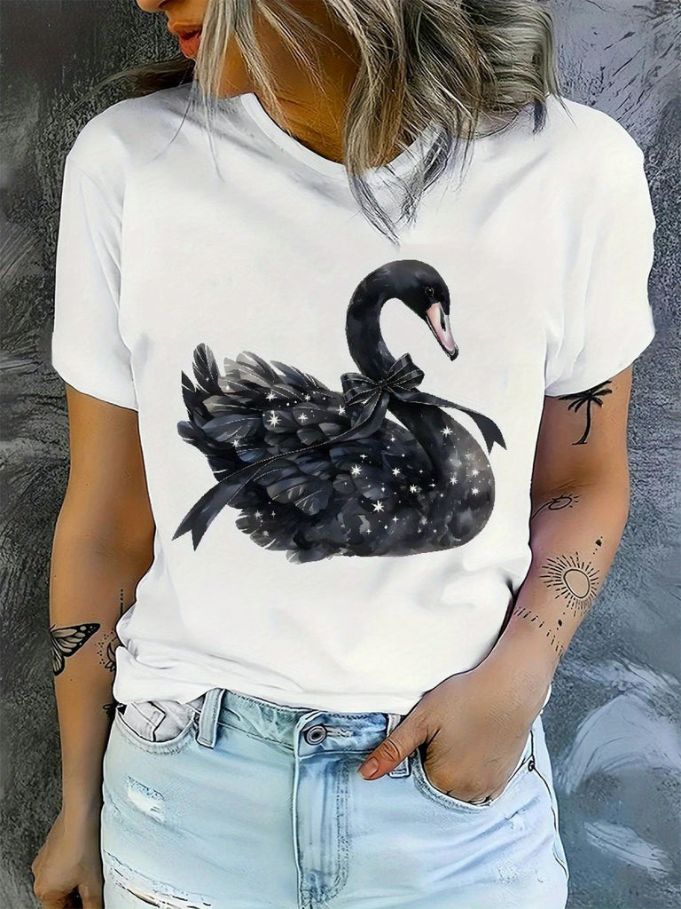 Graphic Tshirts Women Elegant Black Swan Floating Gracefully Among Reflective Water Surface, Womens Graphic Tshirts, Cute T Shirts For Women