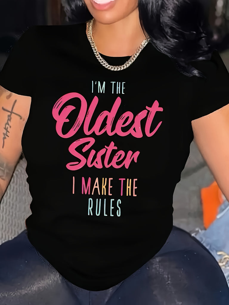 Pink Shirt Womens Im The Oldest Sister I Make The Rules Bold Pink Text On Black Cotton Tshirt, Red T Shirt Women, Womens Shirts