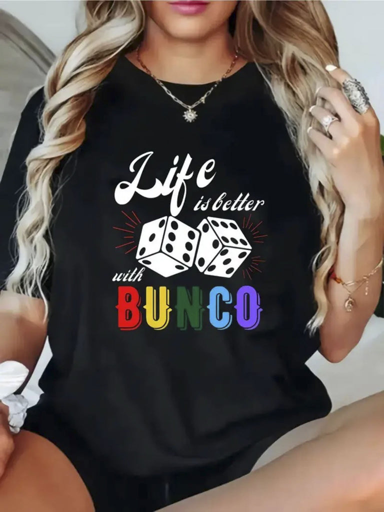 Pink Shirt Womens Life Is Better With Colorful Dice Featuring Bunco Game, Red T Shirt Women, Womens Graphic T Shirts