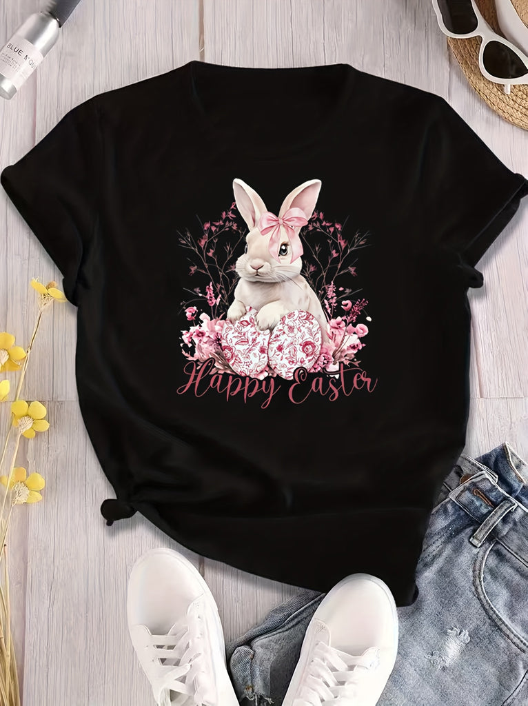 100 Cotton T Shirts For Women Happy Easter Bunny With Pink Flowers And Delicate Floral Surroundings, Shirt For Women, Womens Grinch Shirt