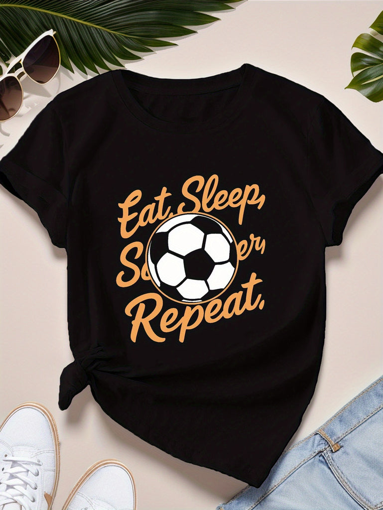 Black T Shirt Women Eat Sleep Soccer Repeat Classic Sporty Ball With Bold Text Shirt, Vintage T Shirts Women, Pink Shirt Womens
