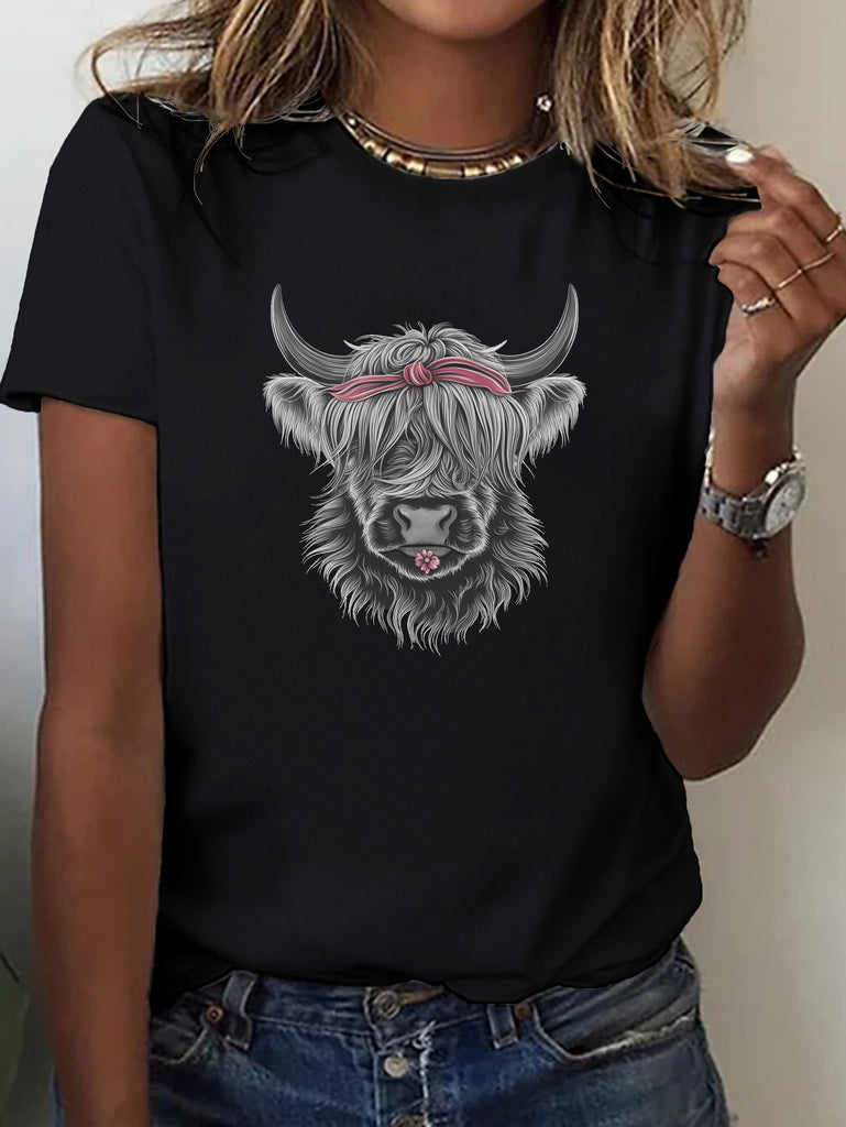 Cotton Shirts For Women Black Soft Fur Highland Bull With Red Headband, Graphic Shirts For Women, Womens Graphic Tees Vintage