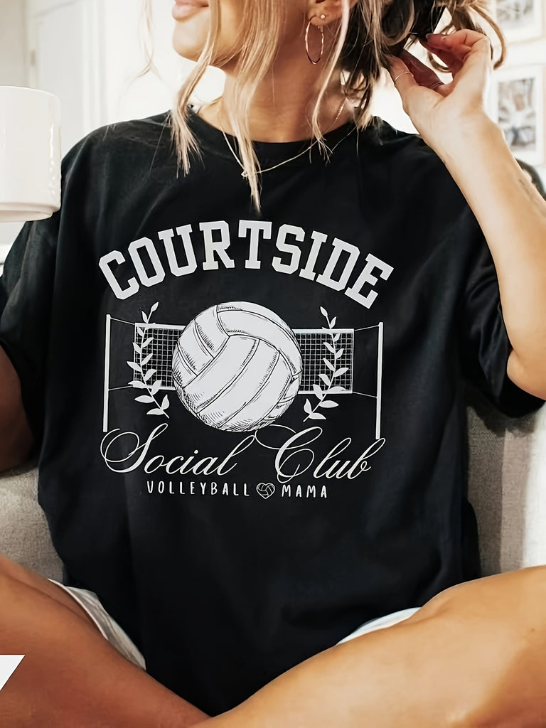 Cotton T Shirts For Women Courtside Social Club Volleyball Graphic Tee, Red T Shirt Women, Womens Graphic T Shirts