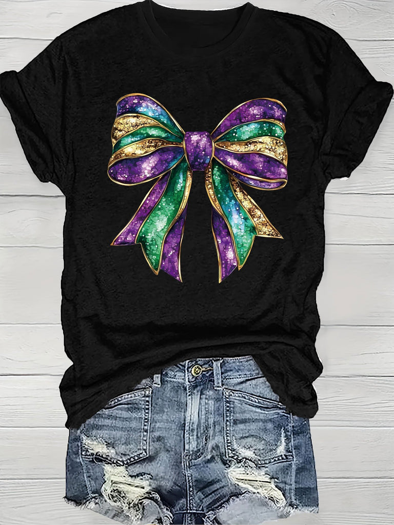 Cute T Shirts For Women Colorful Shiny Pattern With Glittering Purple Green And Golden Ribbon Bow, Graphic Tshirts Women, Grey T Shirt Womens