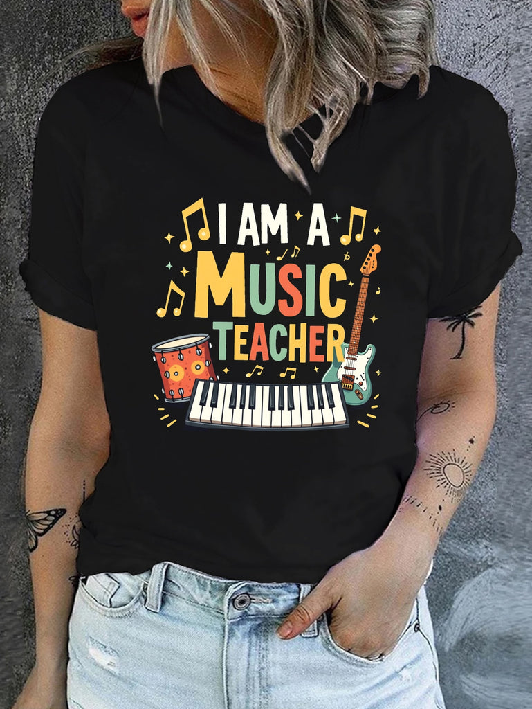 Cute T Shirts For Women I Am A Music Teacher Featuring Colorful Notes Guitar Piano Keys, Funny T Shirts For Women, White Cotton Shirt Women
