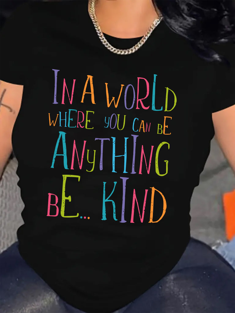 Cute T Shirts For Women In A World Where You Can Be Kind Bright Multicolor Letters On Black Cotton Tshirt, Womens Grinch Shirt, Womens White Tee