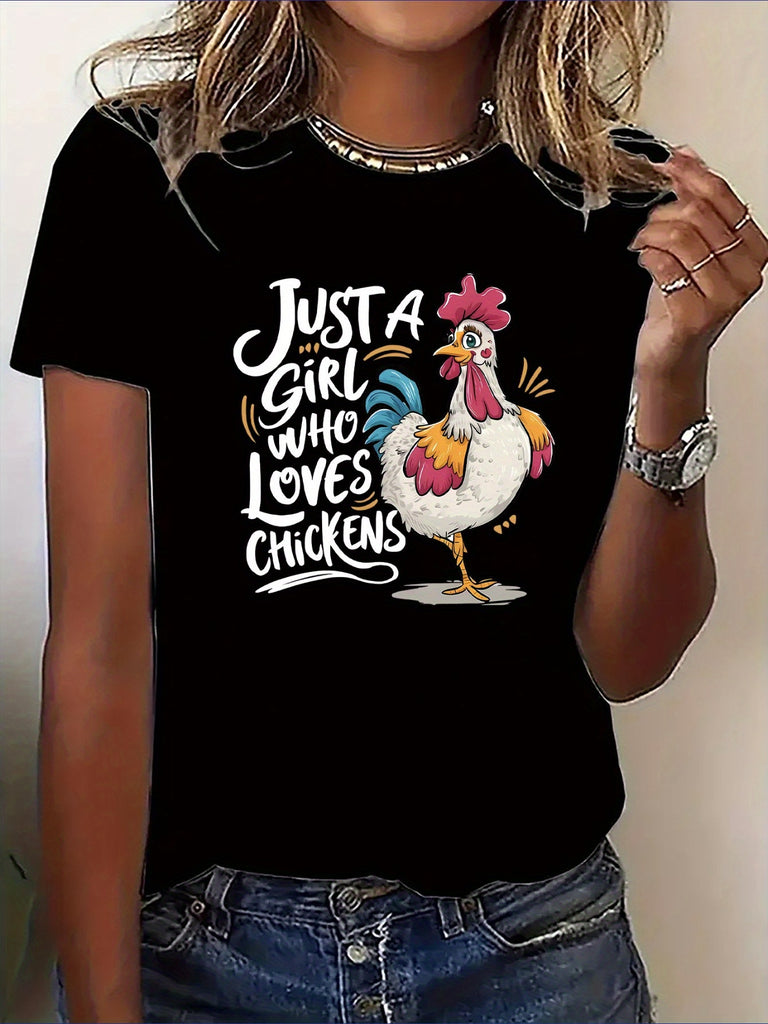 Funny Shirts For Women Just A Girl Who Loves Chickens Cute Red White Chicken, Women Tshirts, Womens Night Shirts