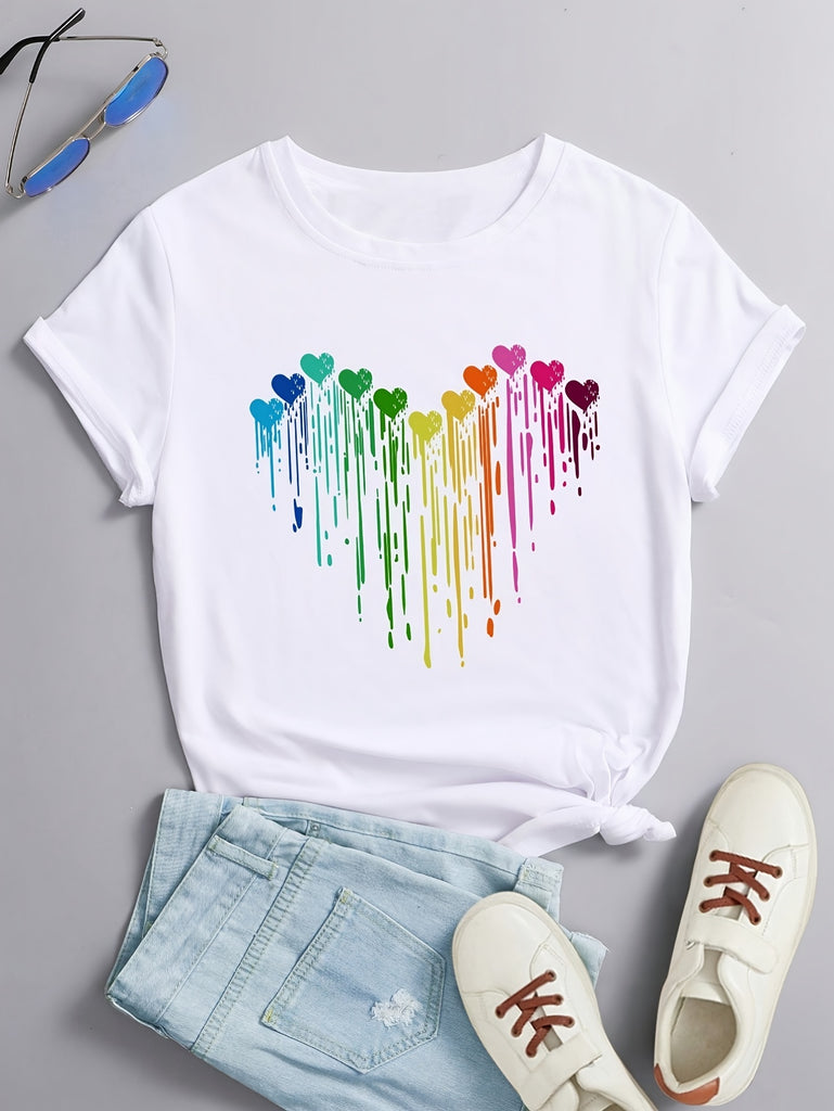 Funny T Shirts For Women Colorful Dripping Hearts Design On White Tshirt, Black T Shirt Women, Womens White Tee